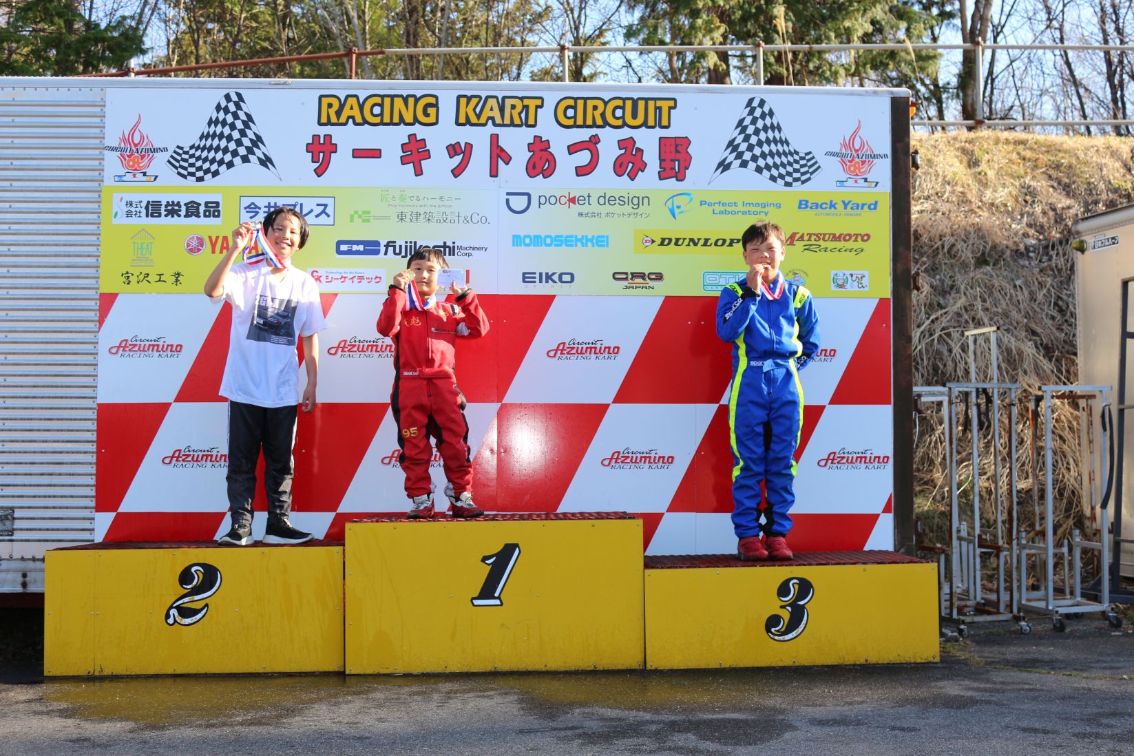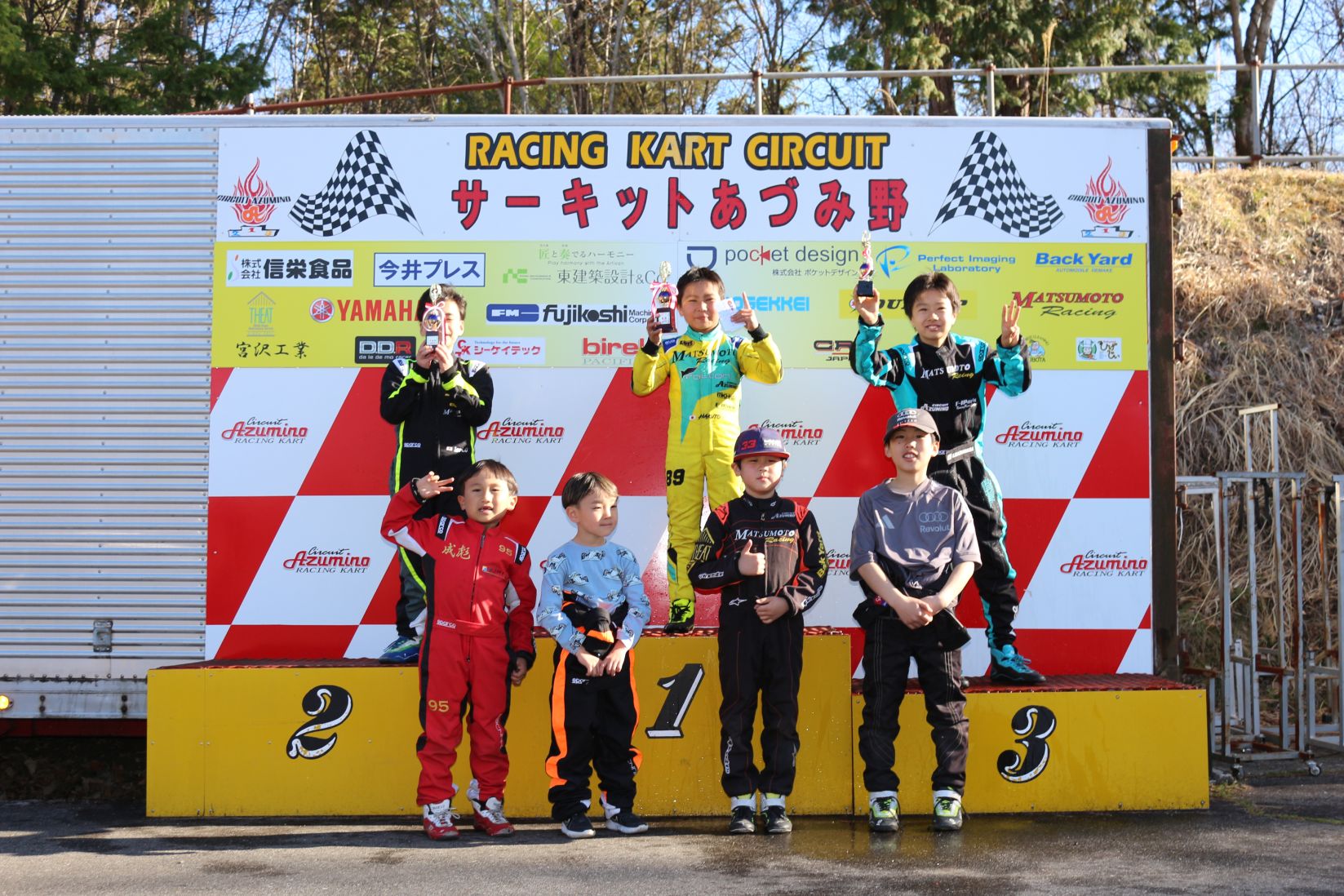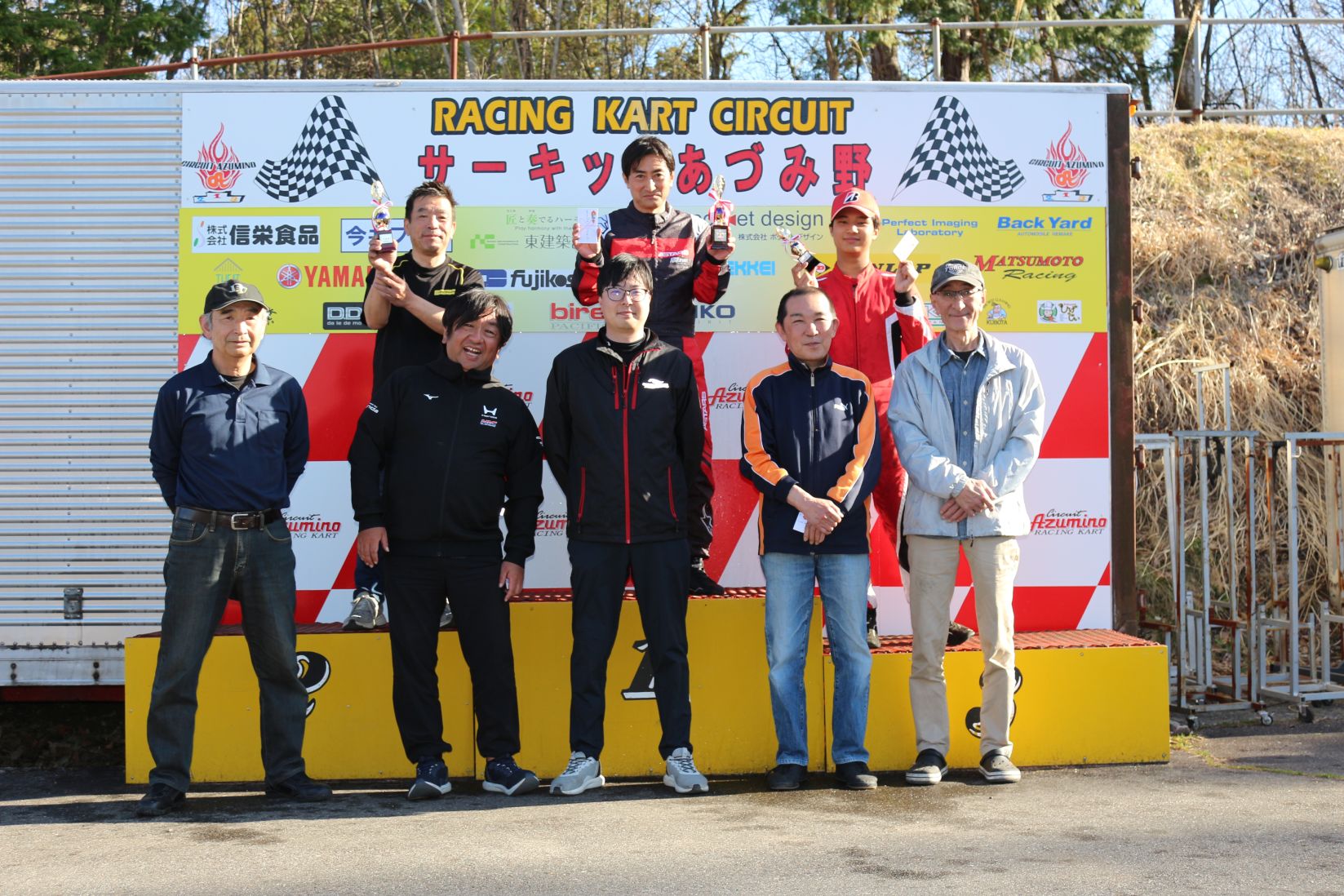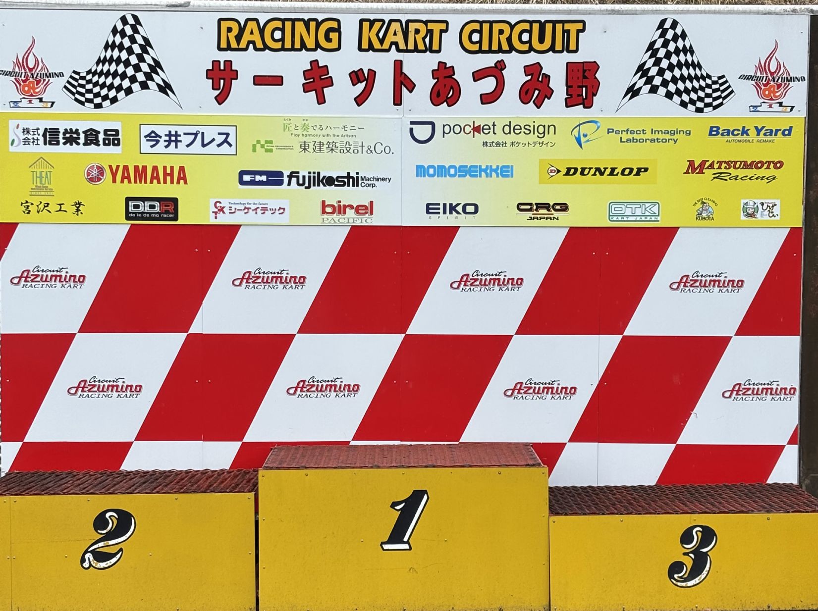 昨シーズンから表彰台の背板にスポンサー様一覧ボードを掲示させていただいてます。