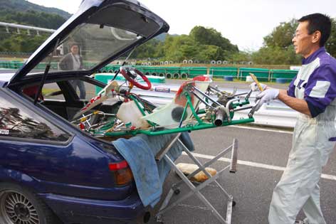 この人はトヨタの86にカートを無理積みしようとしてます 普通は下の写真のようにハイエースとか商業者に積んでくる人が多いんですけどね・・・。